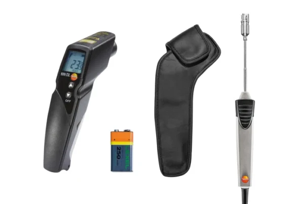 Con el set del termómetro infrarrojo testo 830-T2 se asegurará un equipamiento total para las mediciones de temperatura rápidas en la industria y la artesanía.
