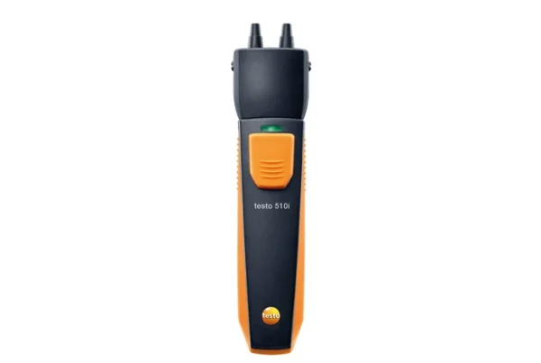 - 1 manómetro diferencial testo 510i con manejo a través de teléfono inteligente, incl. set de mangueras (Ø 4 mm y 5 mm) con adaptador, pilas y protocolo de calibración (0560 1510)